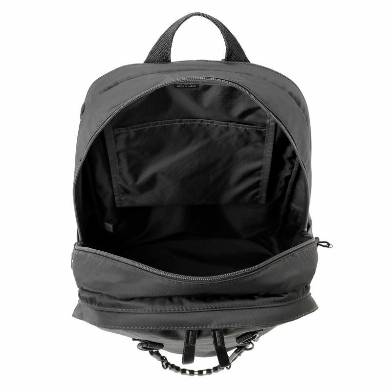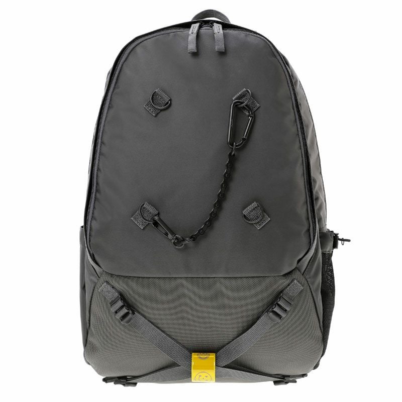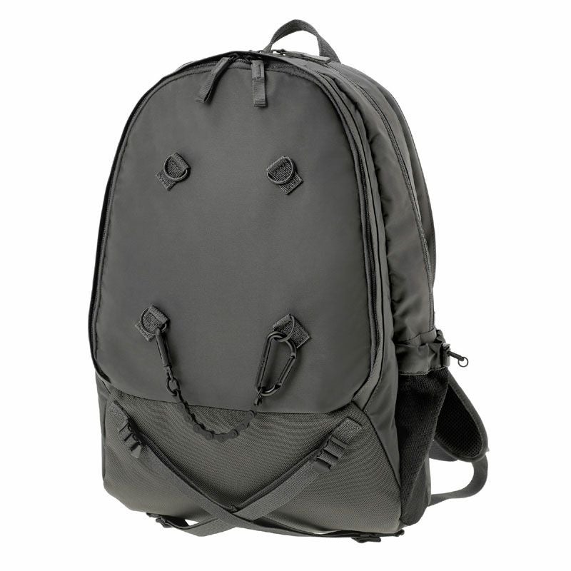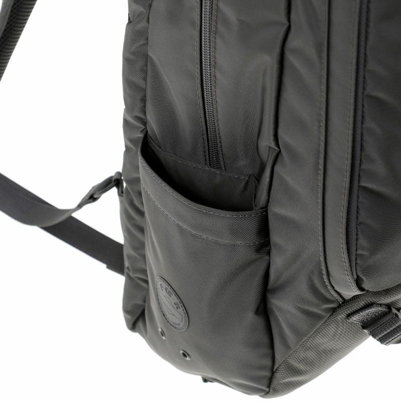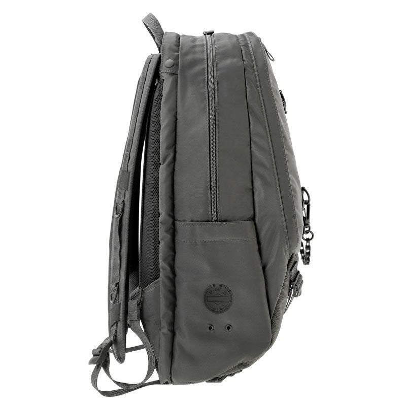 デイパックは3層構造の収納部を設けたオン・オフ問わず使える機能的なアイテムです。メイン収納部はファスナーによって大きく開くため、中の荷物が見やすい仕様です。後層部分の内装にクッション材を配しており、16inchのPCを収納可能です。前層部分は内装にスマートフォンやウォレットなどを収納できるポケットを設けています。サイドポケットには600mlのペットボトルや折り畳み傘が収納可能です。
