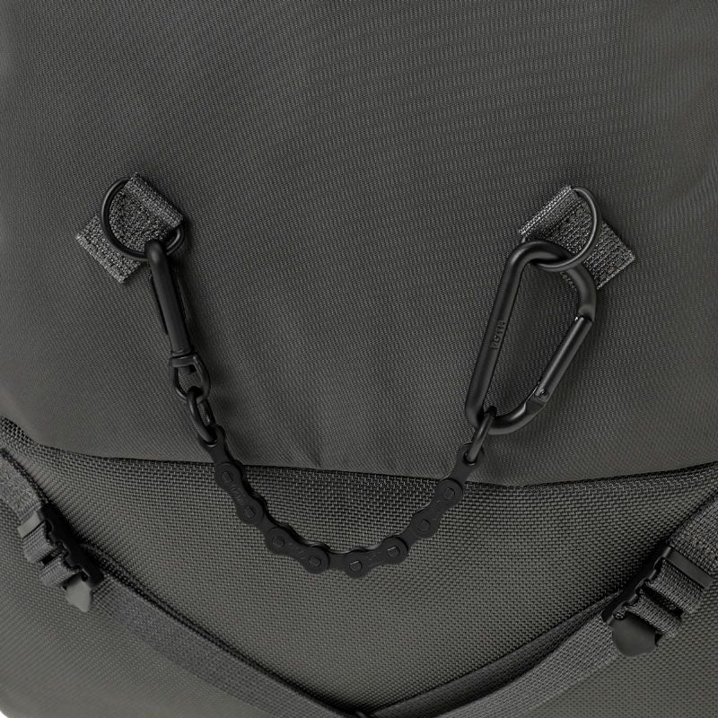 機能美と耐久性を兼ね備えた競技用の自転車チェーンを使用したオリジナルチェーン※も付属します。さまざまな使い方ができるこのチェーンは、バッグや小物、パンツのベルトループなどに取り付けてアクセサリーとして使用可能です。しなやかな動きと独特のシルエット、黒クロムメッキを施した深い黒色が魅力です。