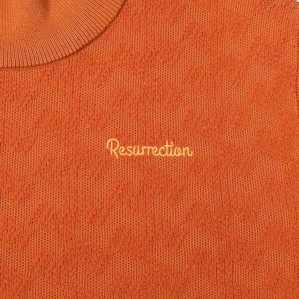 レザレクション柄を立体的に見せる表現方法を実現したセーター。ワードローブに加えたくなる魅力的な一着に仕上がりました。