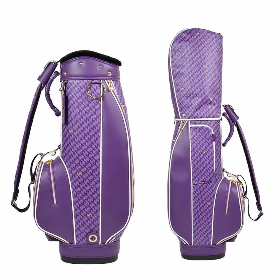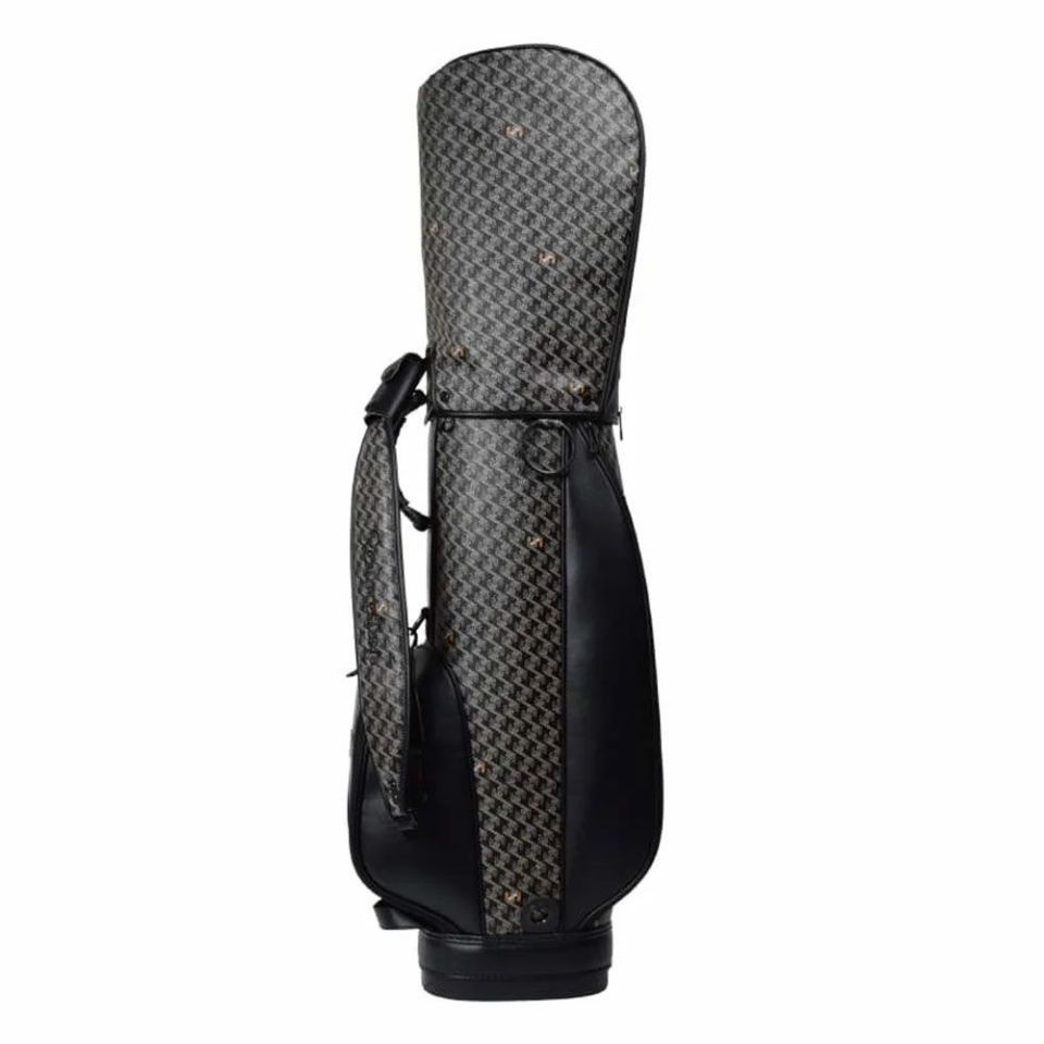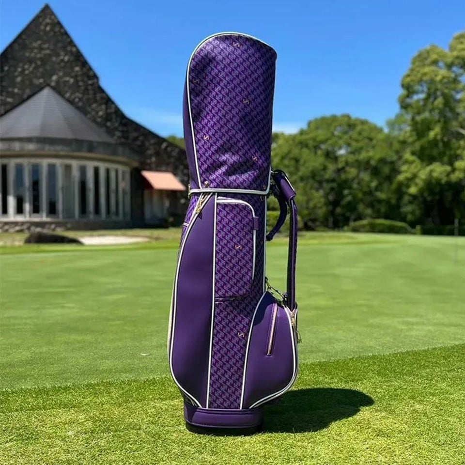 中心にはブランドロゴをあしらい全体的に角を出したデザインの金属パーツが加わることで、キャディバッグの雰囲気がグッと引き締まり、一気に高級感がアップ致しました。