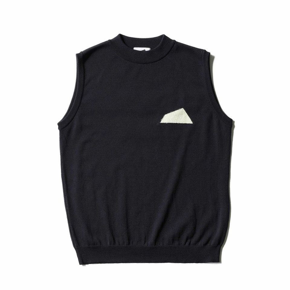 サルベージパブリックコレパ SALVAGE PUBLIC Kolepa ポロシャツやモックネックとの相性を考慮して僅かに襟元を高くデザインしたセミモックネックベスト