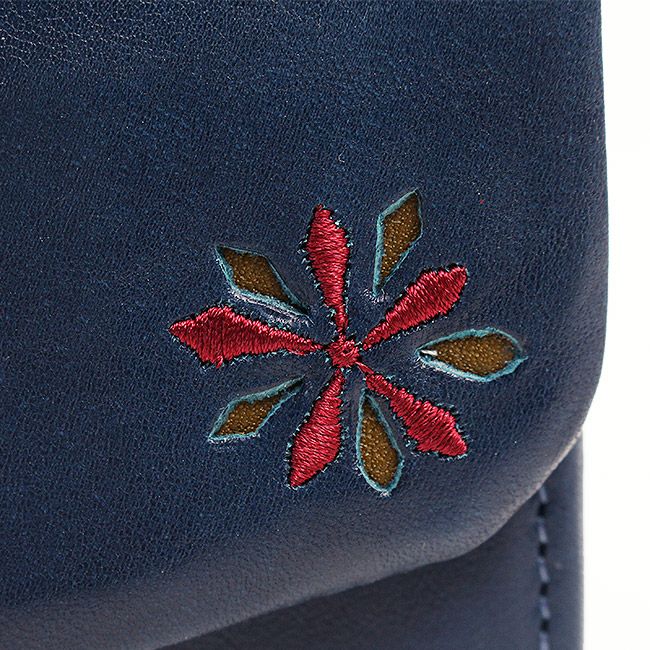 フロントに裏地と同じ模様が、パンチングと刺繍で施されています。