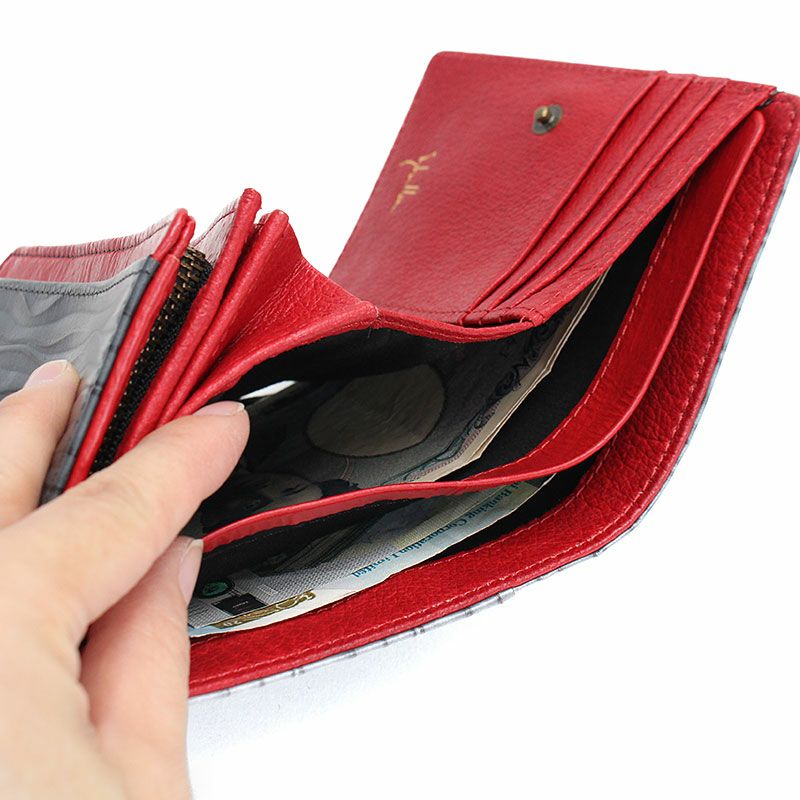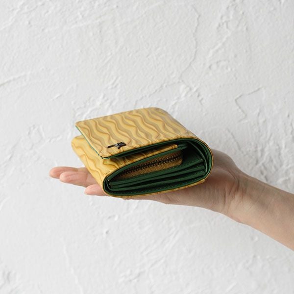 ウェーブ状の型押しが印象的な二つ折り財布