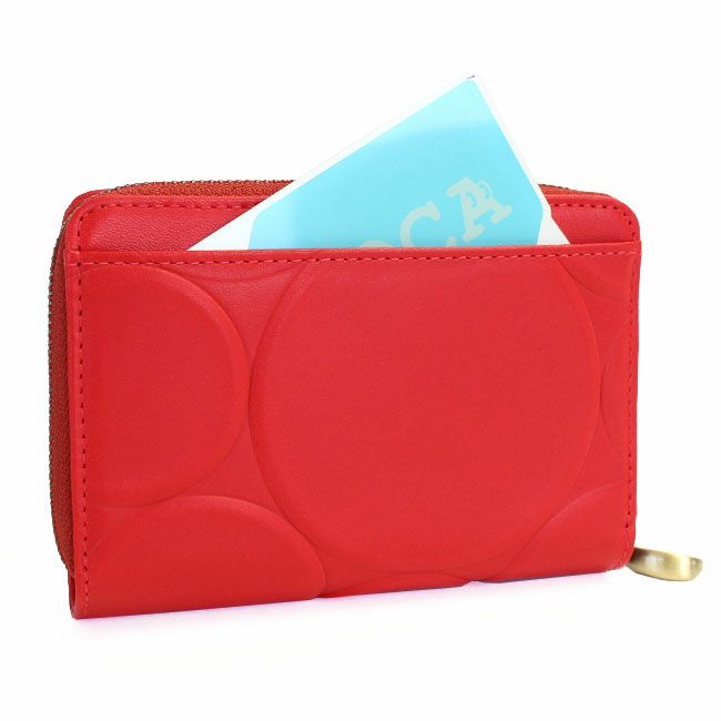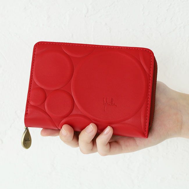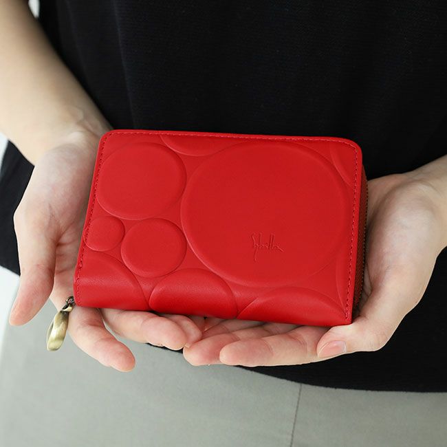 牛革に大小様々なサイズの円を大胆に型押しし、ぷっくりとした凹凸のドットの型が楽しめます。