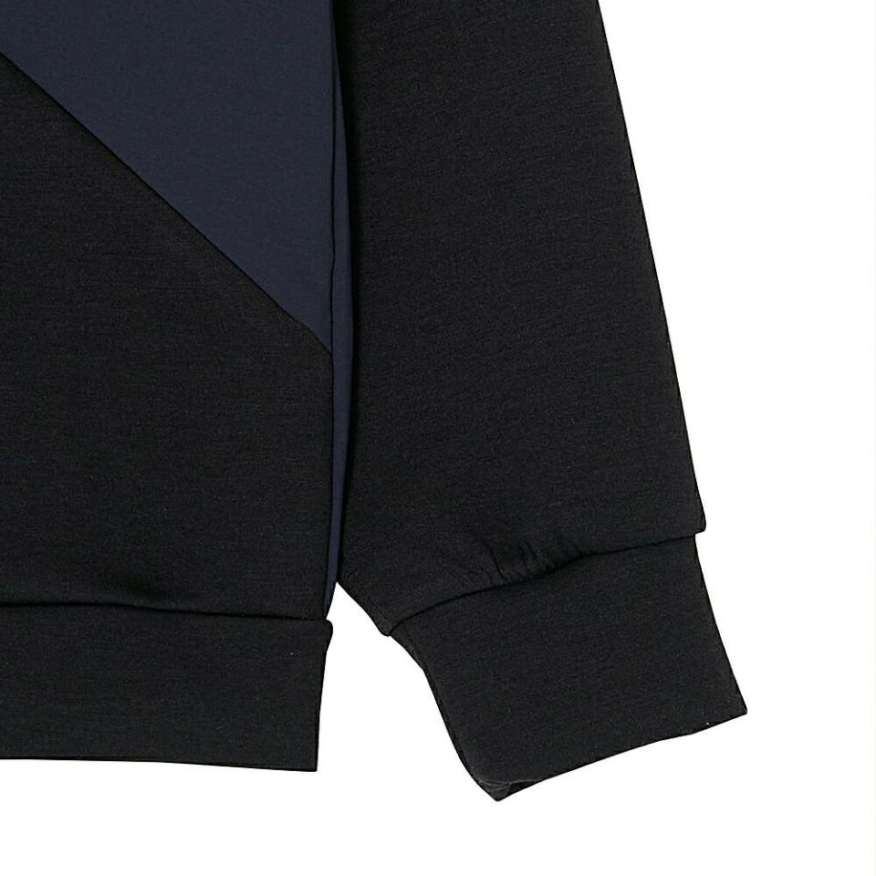 配色部分には、リサイクルナイロン糸を使ったドライタッチの2WAY素材を重ねて、機能性とデザイン性を両立しています。