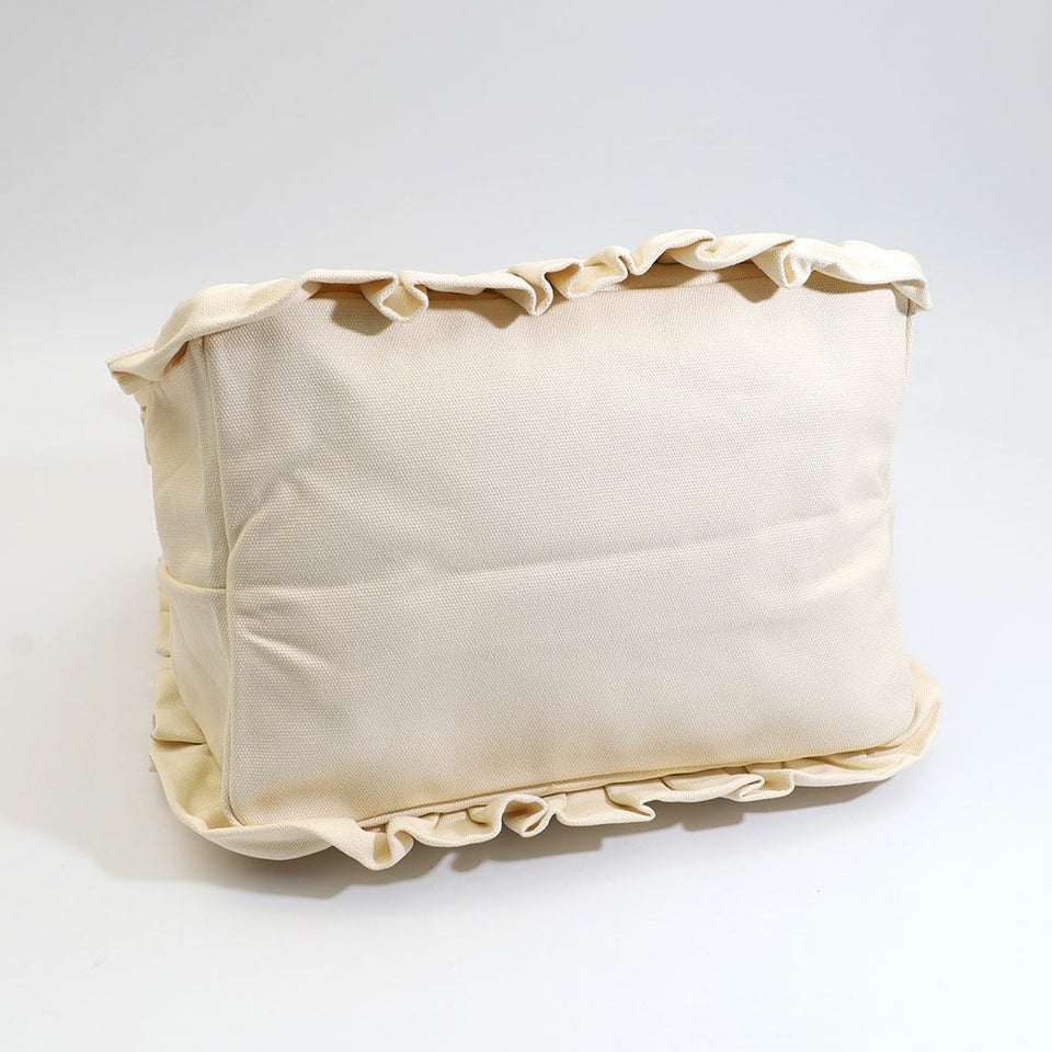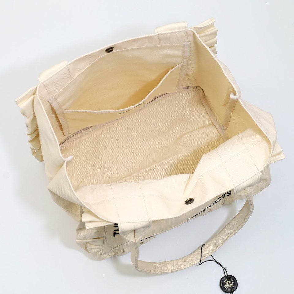 フリル×刺繍ロゴが華やぐ上品キャンバストート