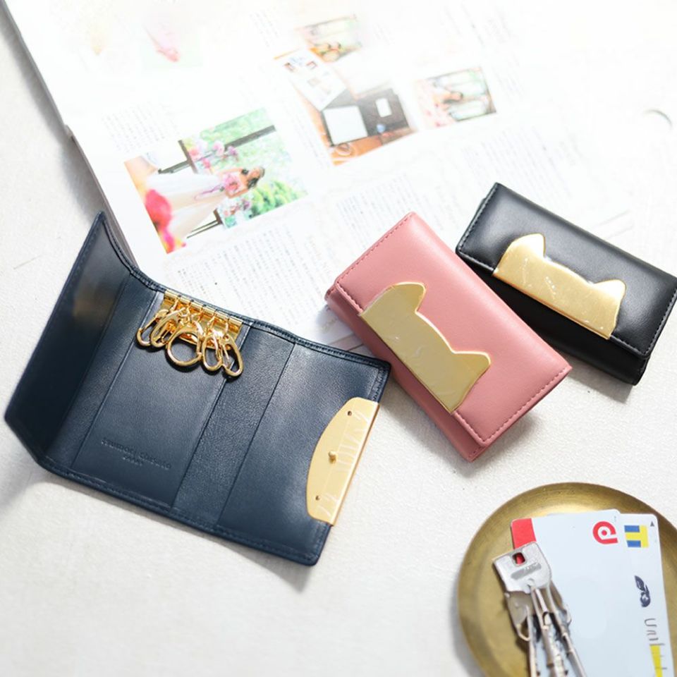 大人カワイイ ラム革の魅力。ネコプレートとゴールド金具で上品に仕上げたキーケース