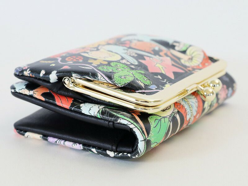 こちらは2つ折り財布で、外装にはがま口式の小銭入れと内装には札入れとカードポケットを設けております。