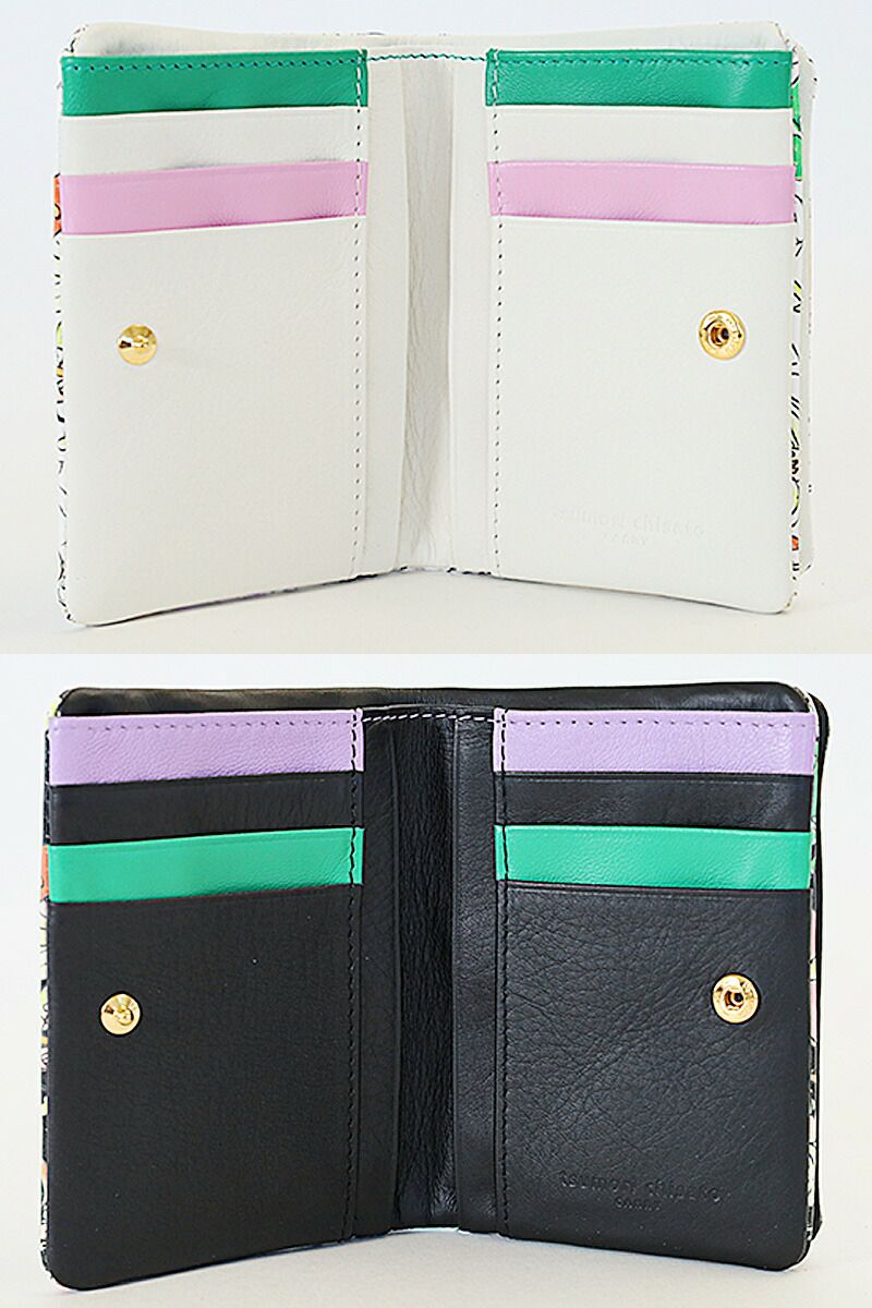 内装のカードポケット部はグリーンとラベンダーカラーで彩られています。