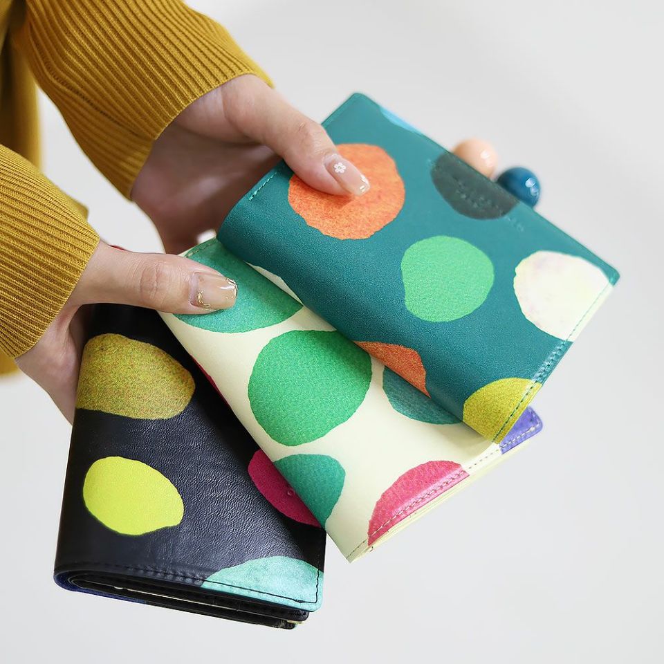 鮮やかなドットデザインとスリムなシルエットが相まって、毎日の持ち歩きが楽しみになるアイテムです。他にはないカラフルさで、バッグから取り出す瞬間も華やかな気分に。ギフトにも喜ばれる、日常を明るく彩るがま口財布です。