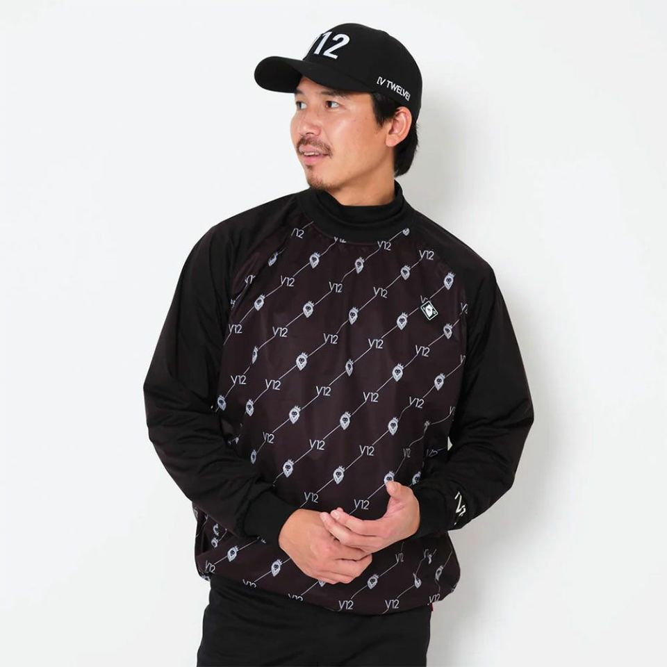 全面に柄の入った身頃とソリッドな切り替えのコントラストが特徴的。 総柄ほど派手になりすぎずコーディネートの主役にもってこいの一枚。 軽量かつ防風仕様なので、寒い日のゴルフでも快適にプレー可能。