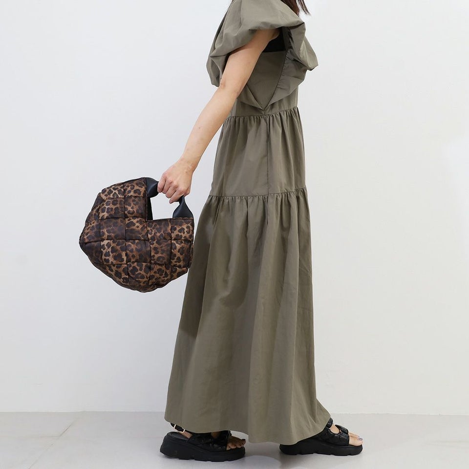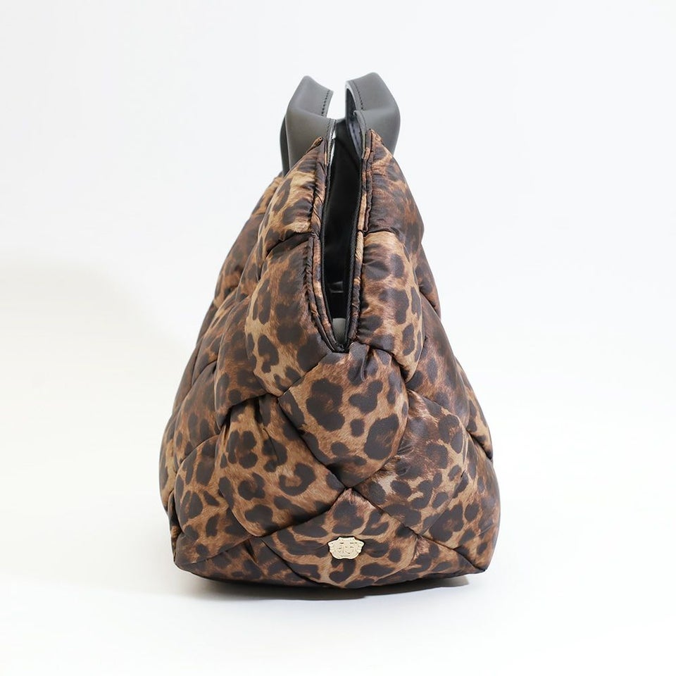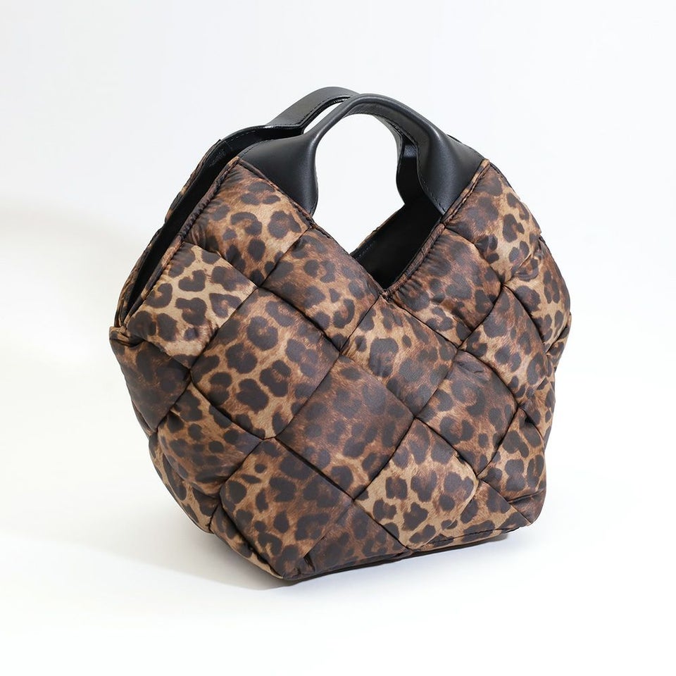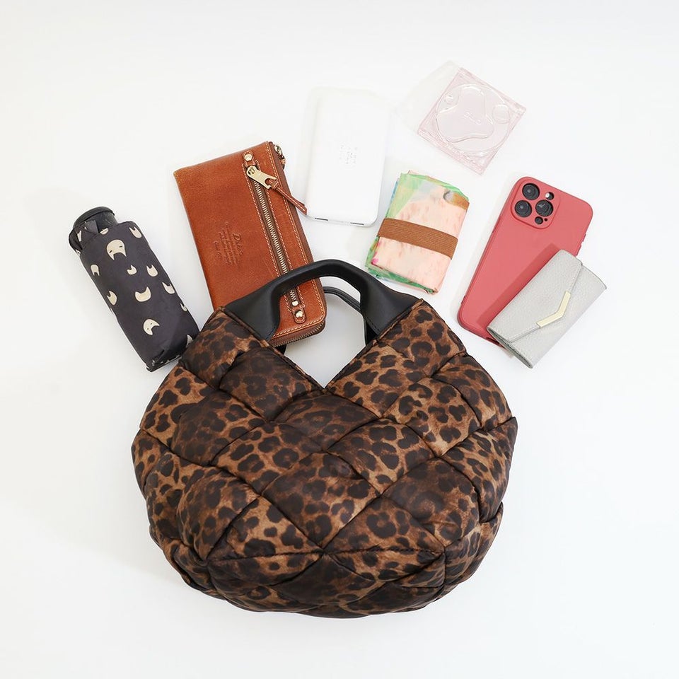 レオパード柄のナイロンを組み合わせたメッシュバッグ。シンプルなフォルムの中に個性を感じさせる、スタイリングのアクセントにぴったりな一品です。