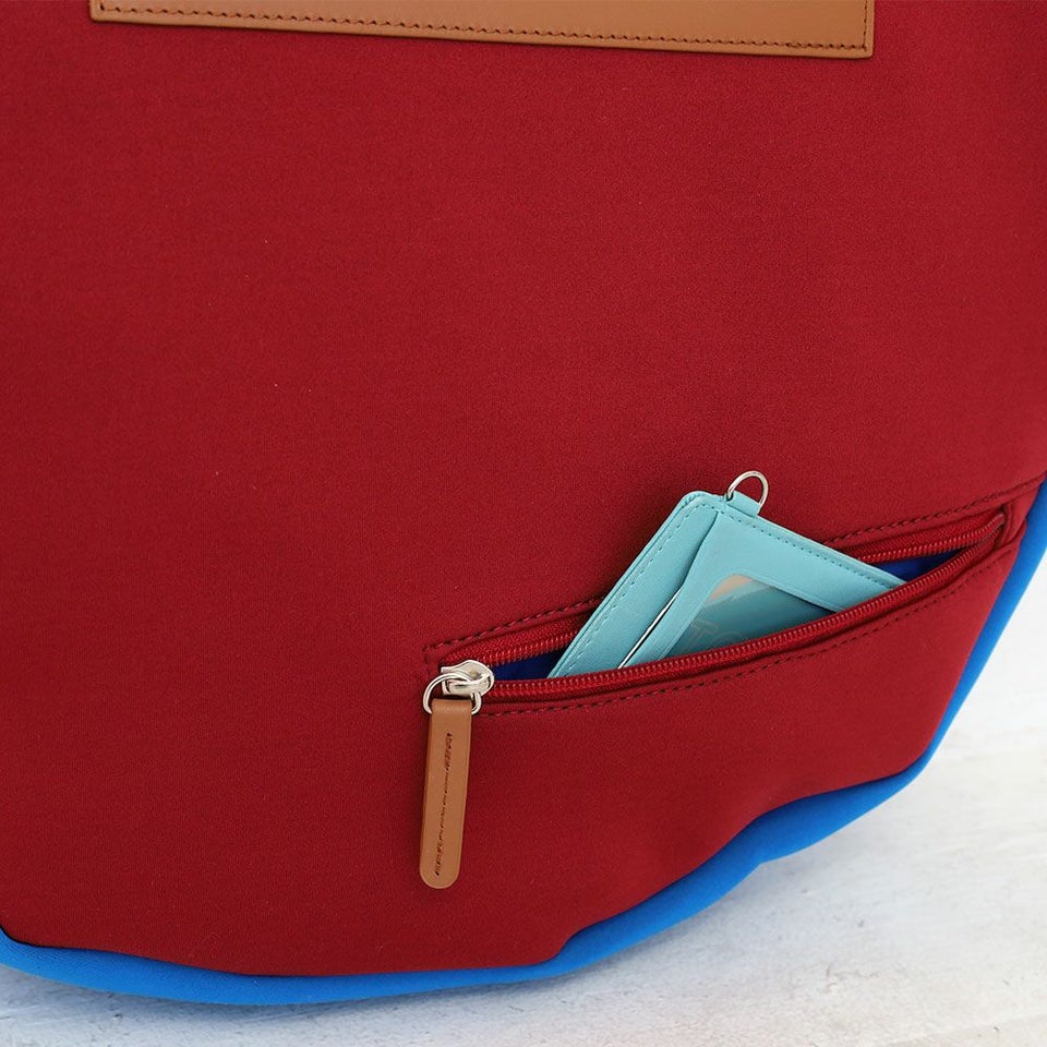 背面には小物収納に便利なファスナーポケットが1か所備わっています。