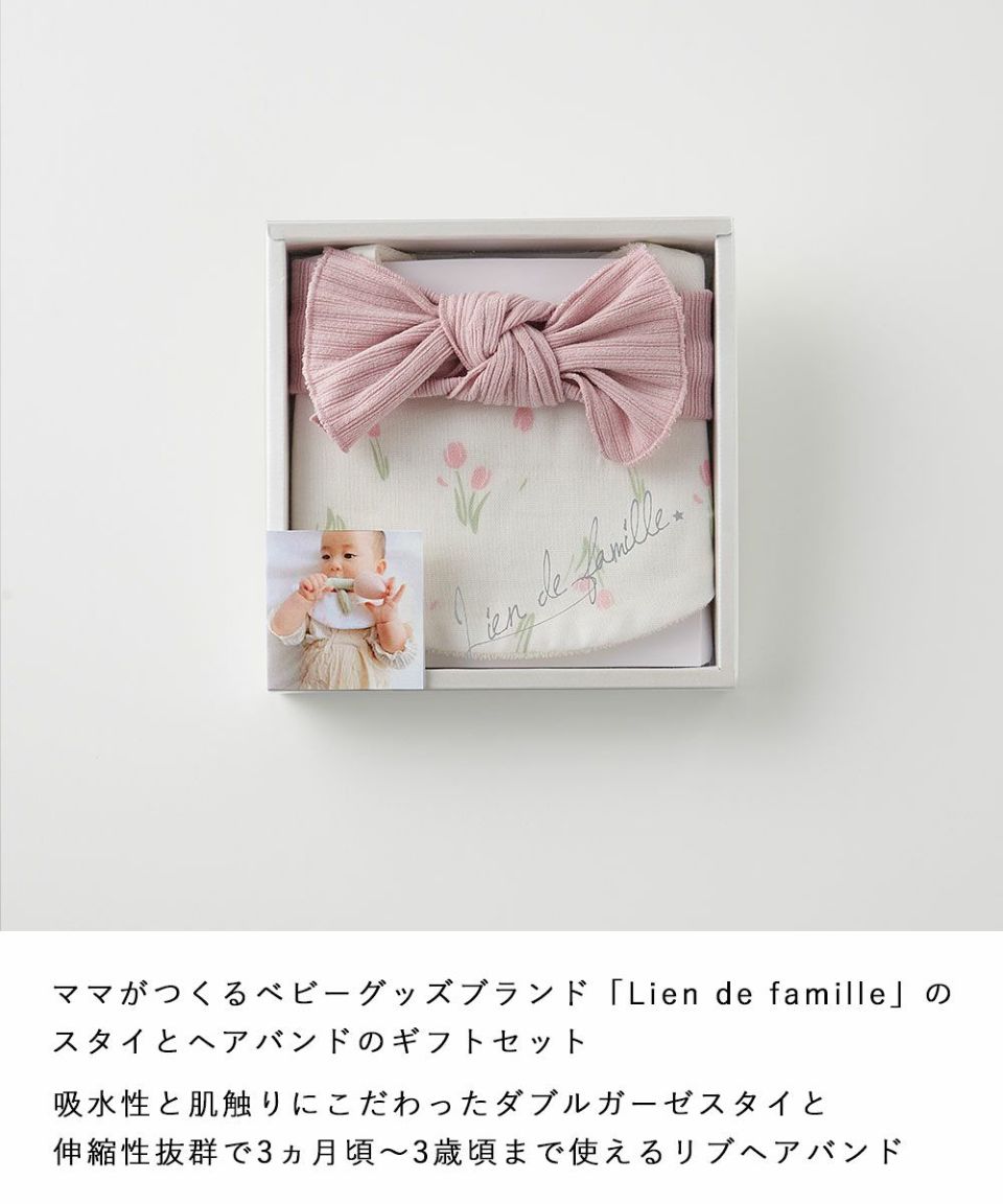 シリーズ案内 ママがつくるベビーグッズブランド「Lien de famille」のスタイとヘアバンドのギフトセット。