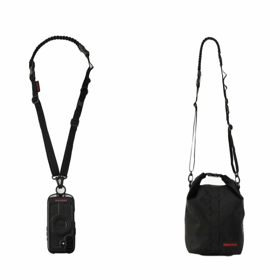 スマホやポーチなどをぶら下げることができるマルチなストラップ。短いストラップ2種を連結させることで手持ちストラップにもできます。