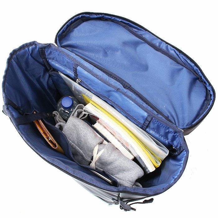 メイン収納はA3もすっぽり入るサイズ感。容量は28Lで部活や教科書などの荷物の多い日にも対応しています。