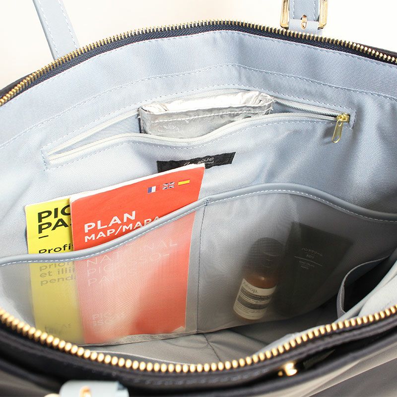 艶のある上品なサラサラしたナイロンに メタルゴールドのファスナーが好相性。
