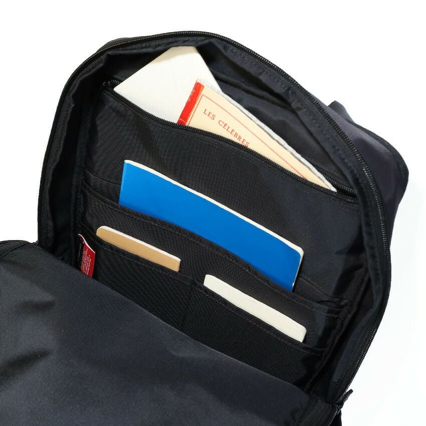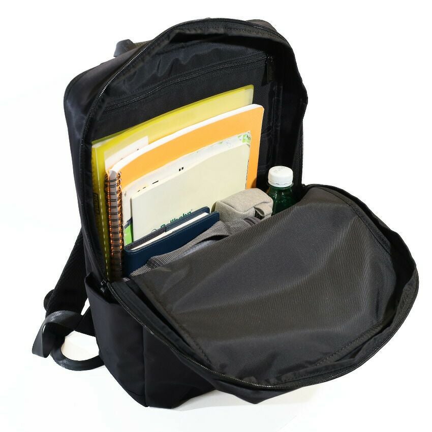 スマートビジネスのスタイルにマッチする薄マチでスクエアなシルエットのバックパック。