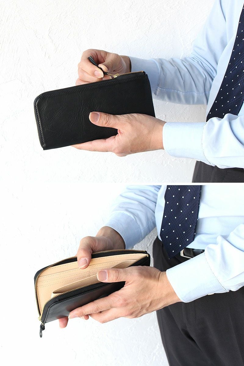 表革は軽いキズがついても指や布でこすることで目立ちにくくなるのが特徴で、ツヤを抑えたアンティークゴールドを採用しており、全体のアクセント!