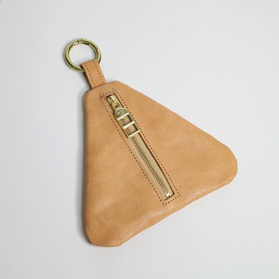 小銭はもちろん、紙幣も三つ折りにすれば収納可能。三角形の構造上、カードは出し入れはややしづらいため、交通系ICカードなど頻繁に出し入れしないカードをいれておくのがおすすめ。改札でそのままタッチ決済もできます。容量として、カード1枚、三つ折り紙幣3枚、小銭10枚は収納できます。