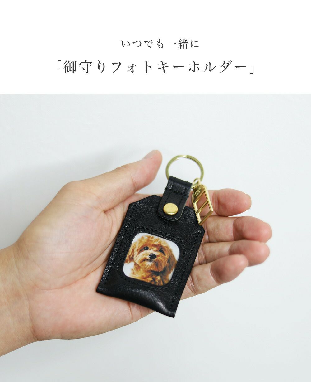 お子様、お孫様、ペット、そして推しなど、大切な写真を入れて持ち歩ける、牛革のフォトキーホルダーです。