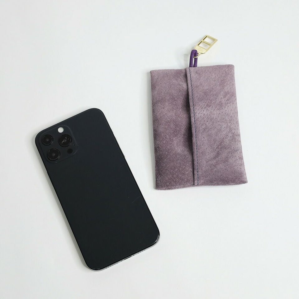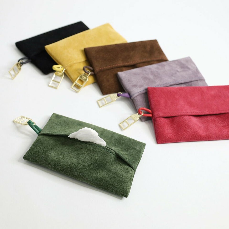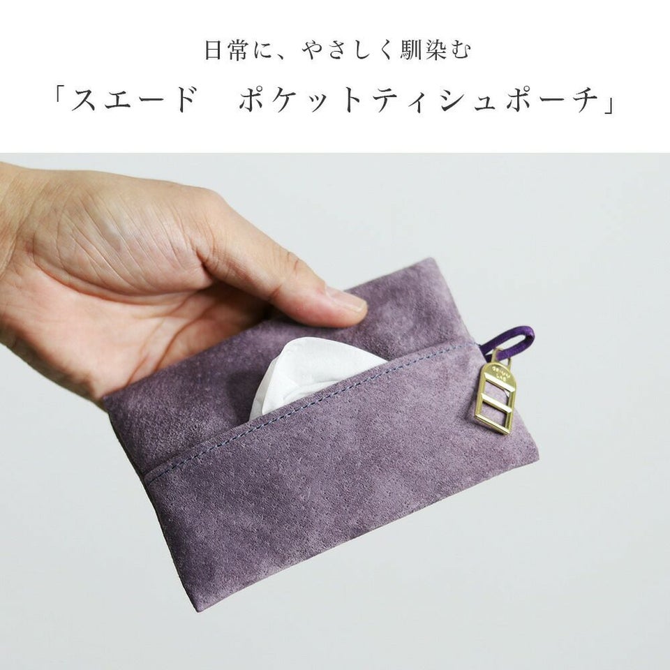 手触りのよいピッグスエードで仕立てたポケットティッシュケース。