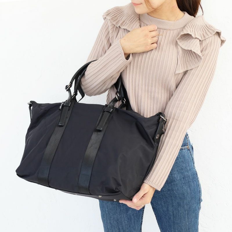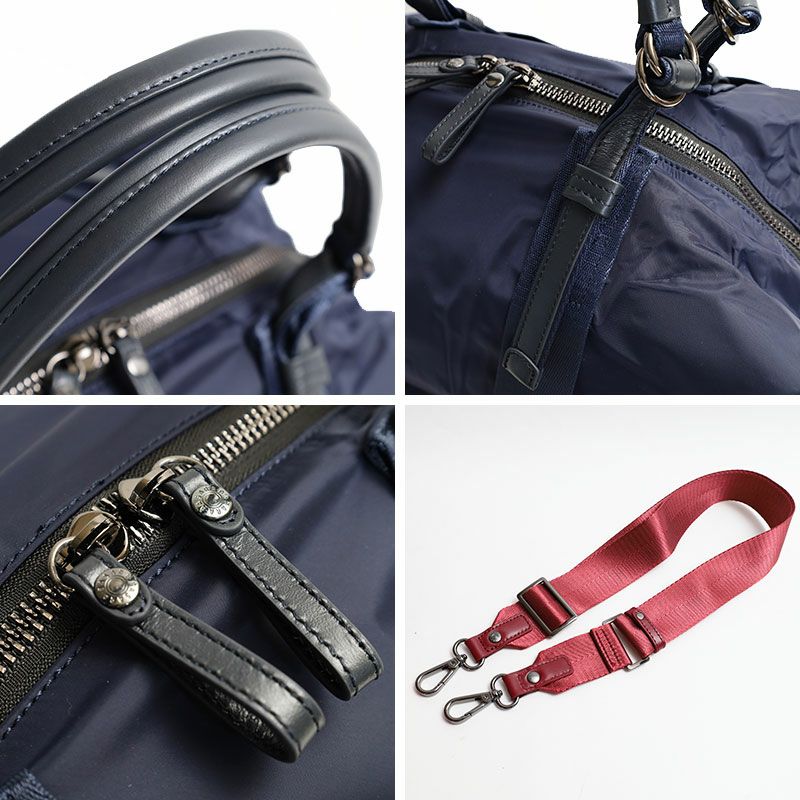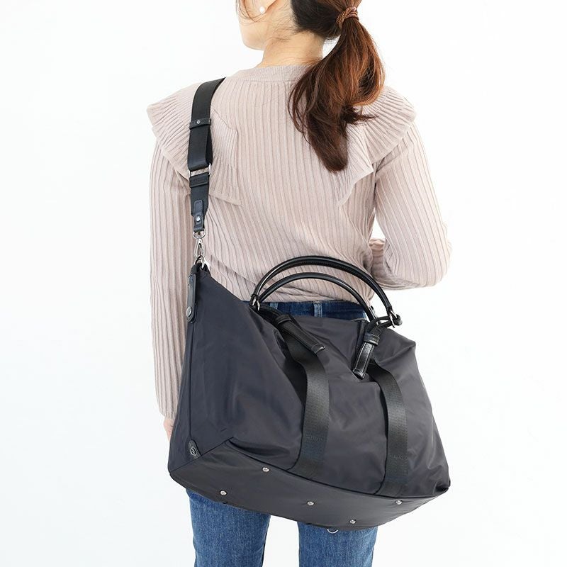 1泊-2泊にも使える容量を備えながらスマートな見ためのボストンバッグ。ホックで調整できる仕様なので、1つで2つのデザインを楽しめます。ショルダーベルトの着脱、ハンドルの長さも調整できるので、手持ちしたいときも肩掛けしたいときも柔軟に対応してくれます。