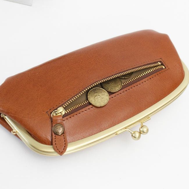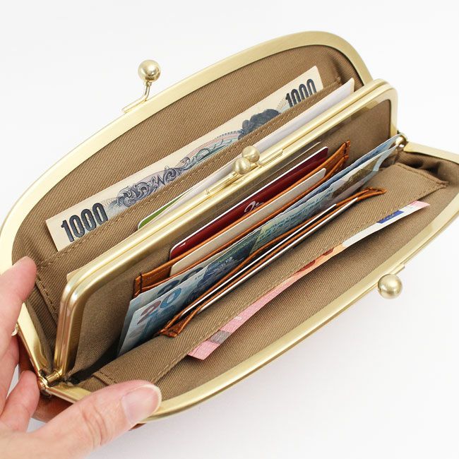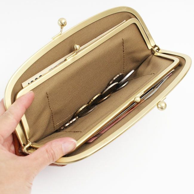 がま口の口金は大きく開き、お財布の中身が一目で分かるのも魅力的。