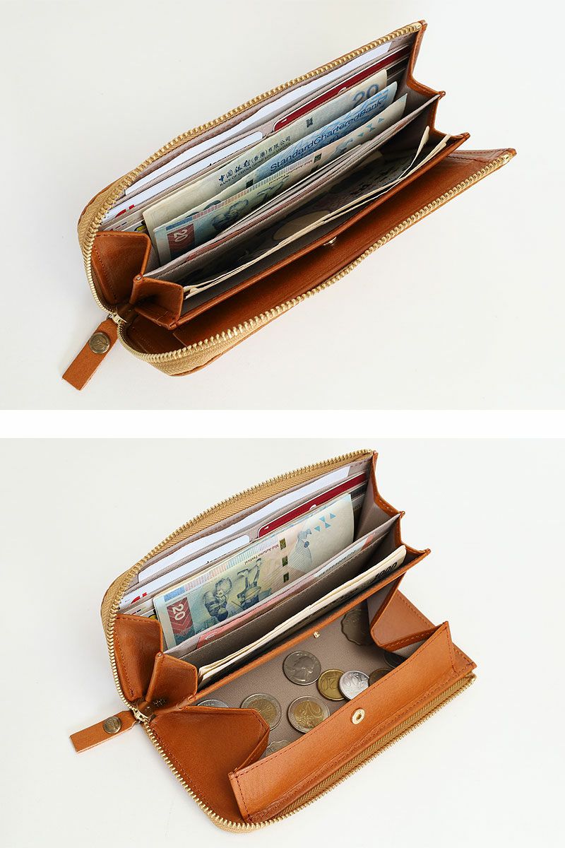 L字型の長財布は、十分な容量が入るのにスマートなサイズ感なので、 その使い心地から人気のあるデザインですが、こちらのデザインは薄マチ付きでさらに収納力があり、 スマートさと容量の多さを併せ持ったデザインです。