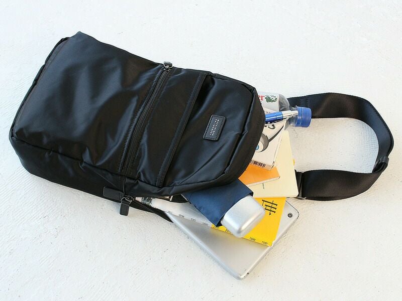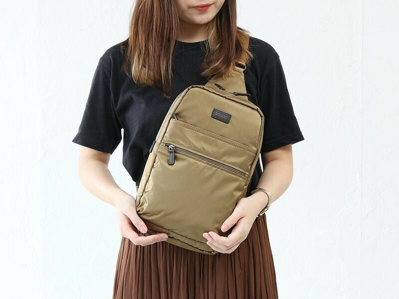ナイロン超強力糸「ROBIC」をツヤ感のキレイなツイルに織り上げたカジュアルスタイルなボディバッグです。B5サイズの書類も入り、タウンユースからレジャー時のサブバッグとしてまで幅広いシーンで使えます。