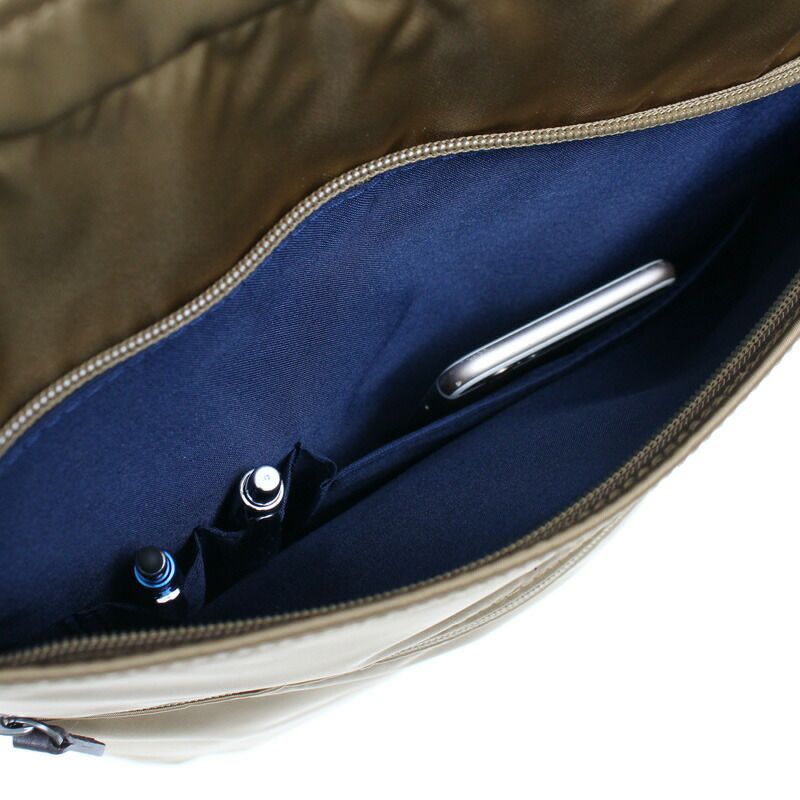 メインポケットは大きく広げることができるマチが用意されており、収納物の出し入れがしやすくなっております。
