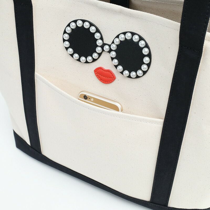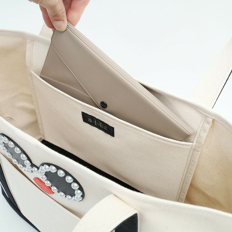 アジョリーのアイコン「パールサングラスちゃん」のデザインをあしらったトートバッグ。