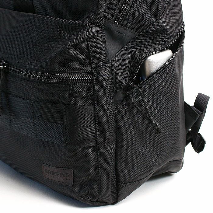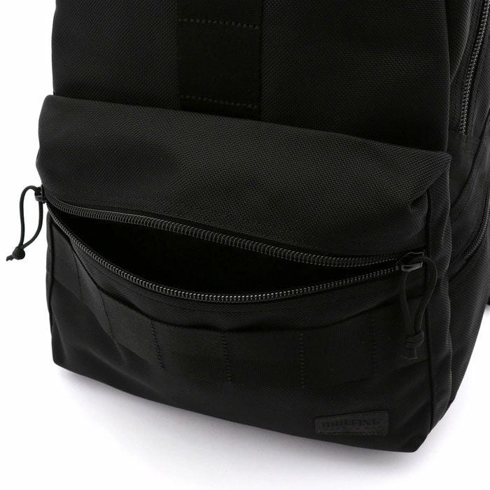 全体を黒でまとめたミニマルな佇まいとしながらも、引き手紐やBRIEFINGを象徴するレッドラインをカバンの内部に配置するなど、BRIEFINGらしい無骨な雰囲気を融合させています。