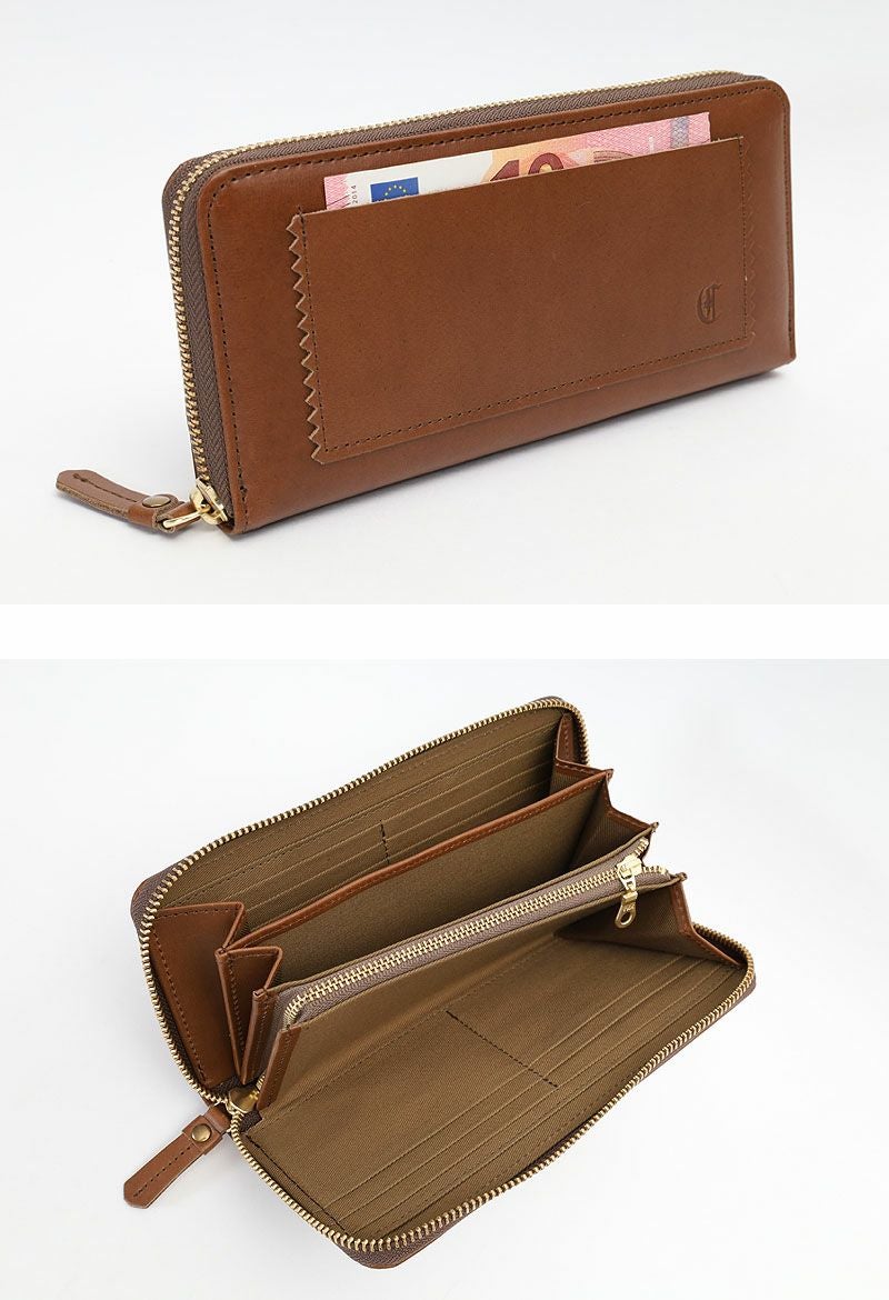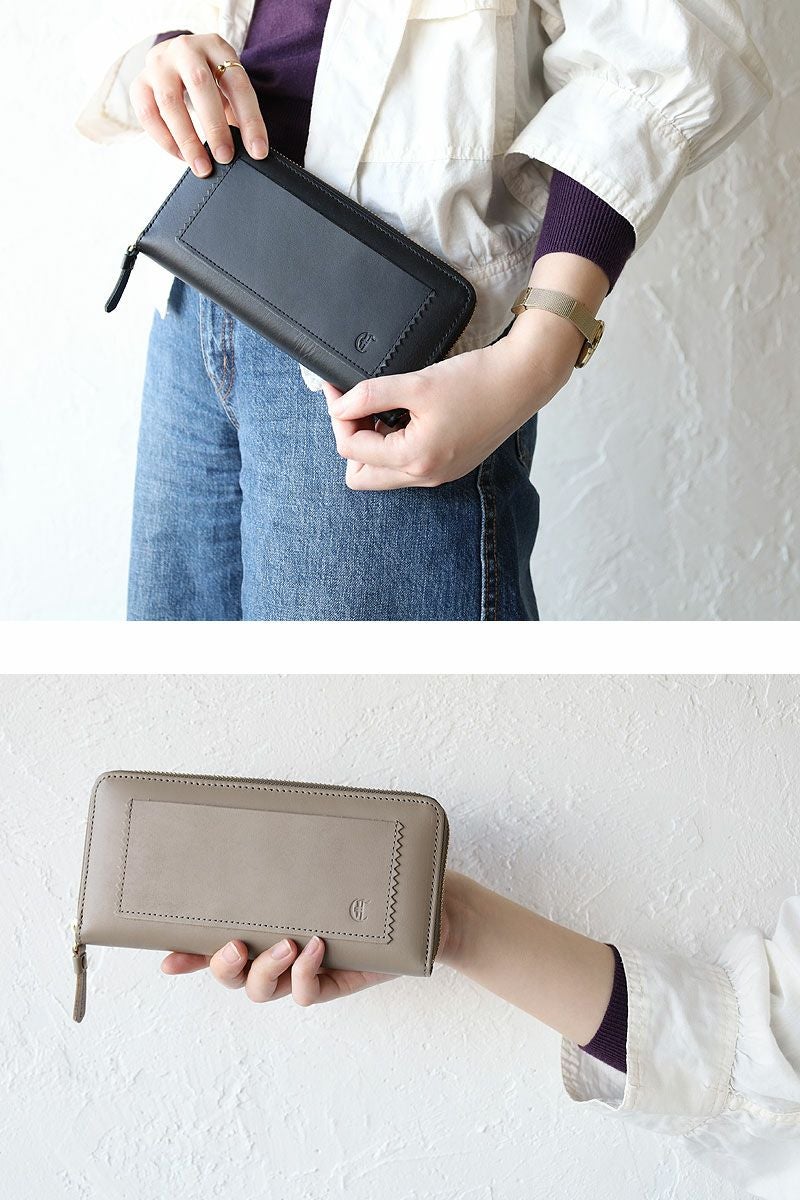 ふっくら質感・艶感控えめで上品なレザー仕立ての長財布。