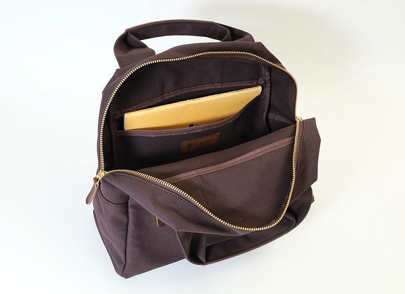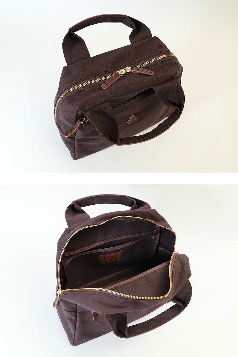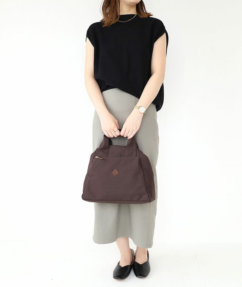 丈夫で使うほどに馴染む11号帆布を使用した、台形フォルムのボストンバッグ。