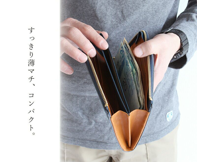 選べるノベルティプレゼント!栃木レザーを使用したスリムで機能的なL型ジップレザーウォレット 日本製 送料無料