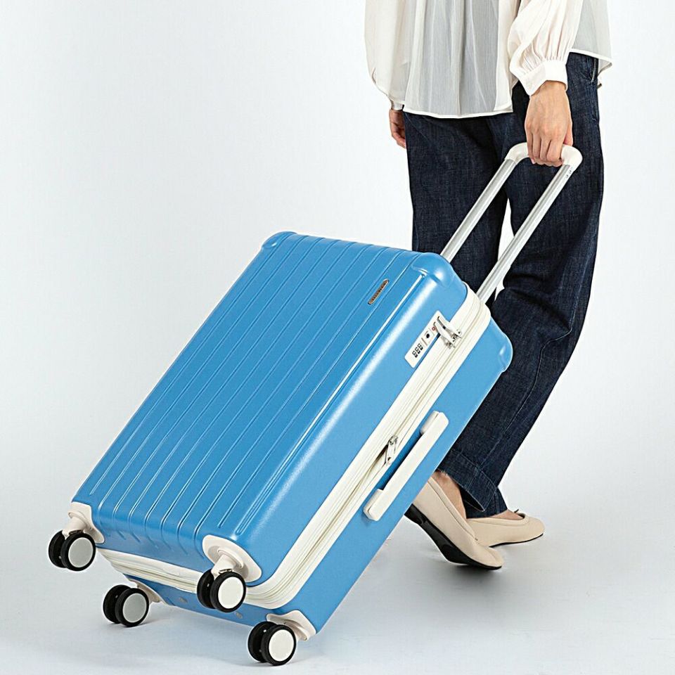 日本のバッグメーカー、エースのカラフルな色展開とコーナパット付きのデザインがおしゃれなスーツケース