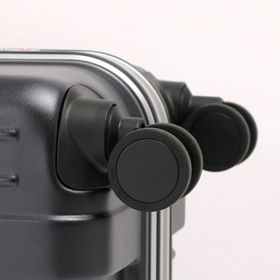 HINOMOTO製ストッパー付き静音キャスター「SILENT RUN」を採用。振動と騒音を抑え、空港や街中での移動がスムーズです。