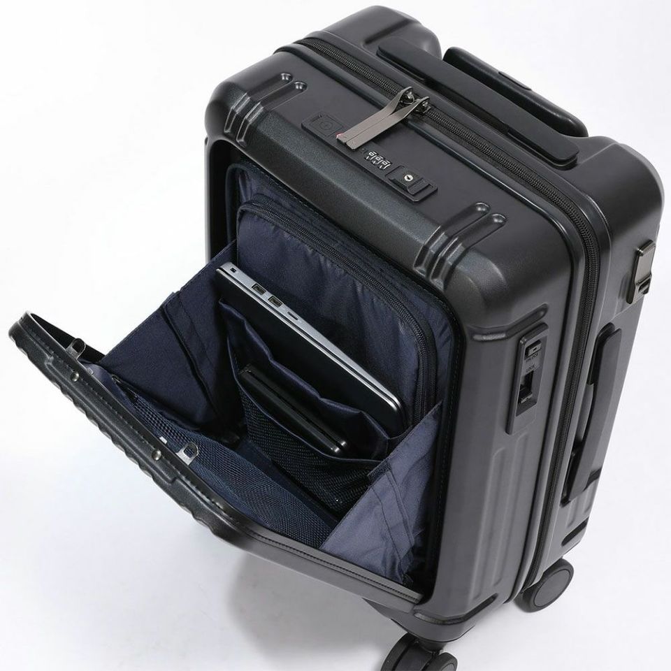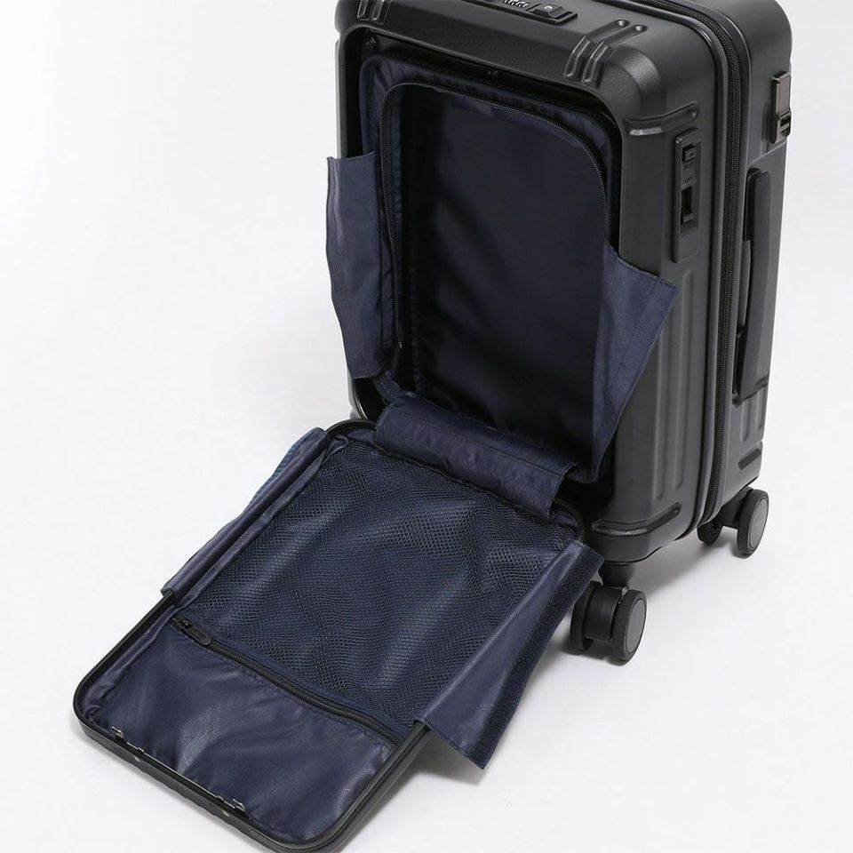 移動中でも素早く荷物を出し入れできる新機構を搭載。ノートPCや書類、旅先で使う小物などをスムーズに取り出せます。