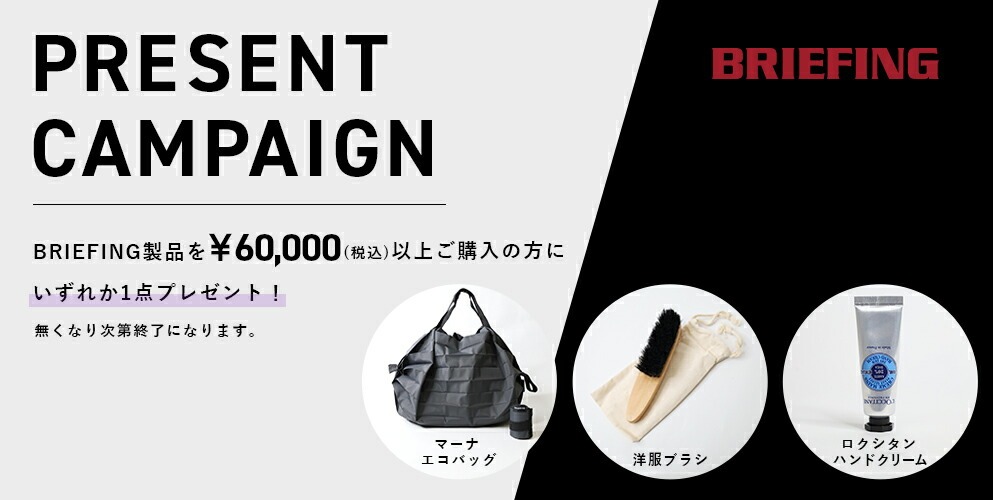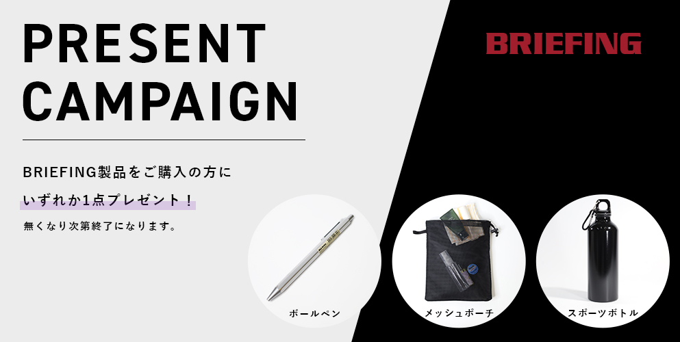 ただいま当店では、BRIEFINGのバッグのうち 「バナー」と「選択肢」がついている商品 をお買い上げいただいたお客様へ、ノベルティをプレゼントしています!