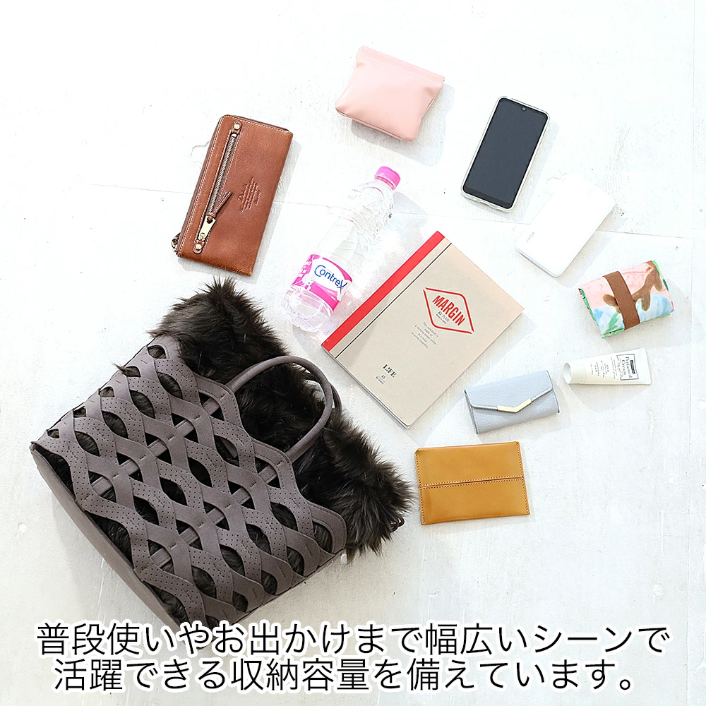 インナーバッグのフェイクファー巾着にはファスナーポケットが1つとオープンポケットが2つあり、実用性も抜かりなく、使うほどに「ちょうどいい」と感じられるはず。