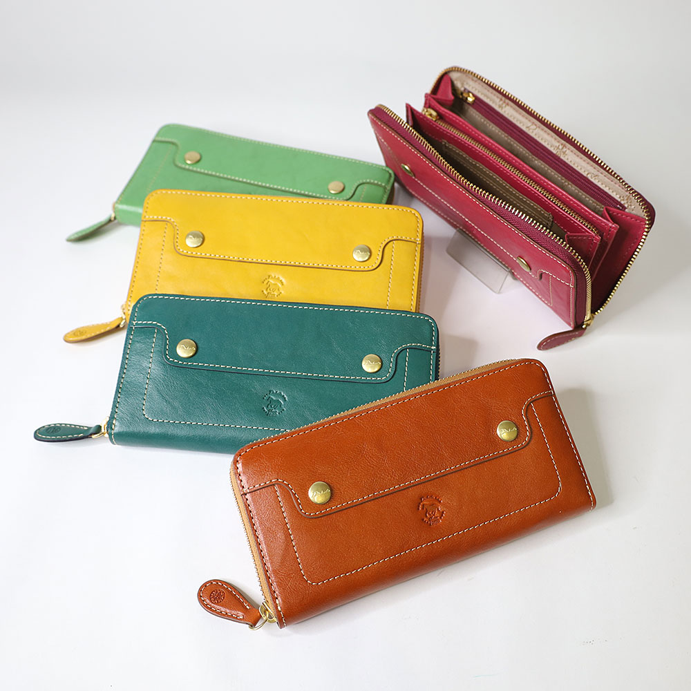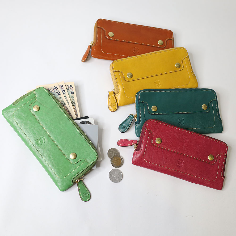 色鮮やかなイタリアンレザーを使ったコンパクトな革財布です。