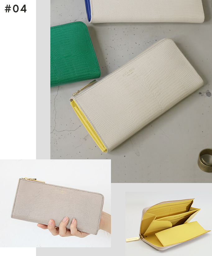 リザード型押しが手元を美しく引き立てるL字ファスナーの長財布。