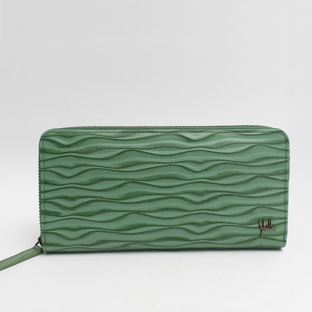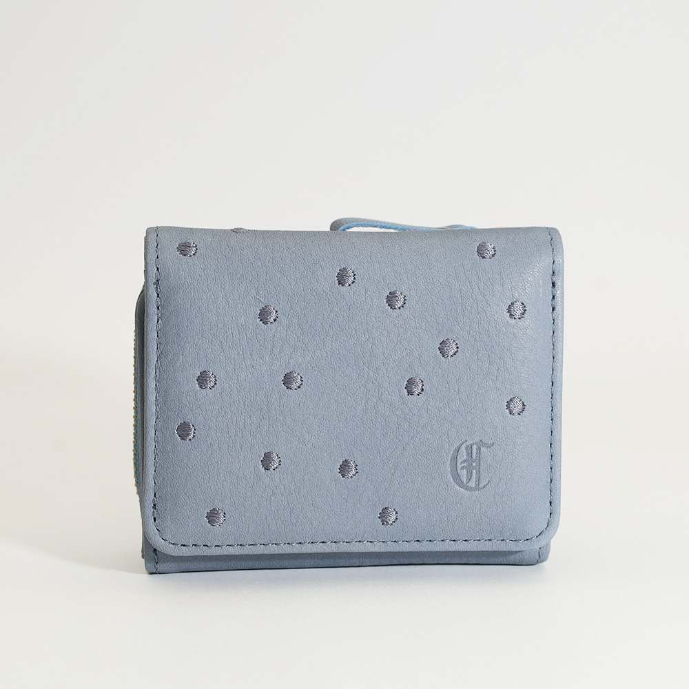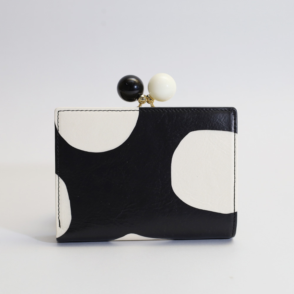 ドットの立体感が手元に映える二つ折り財布。