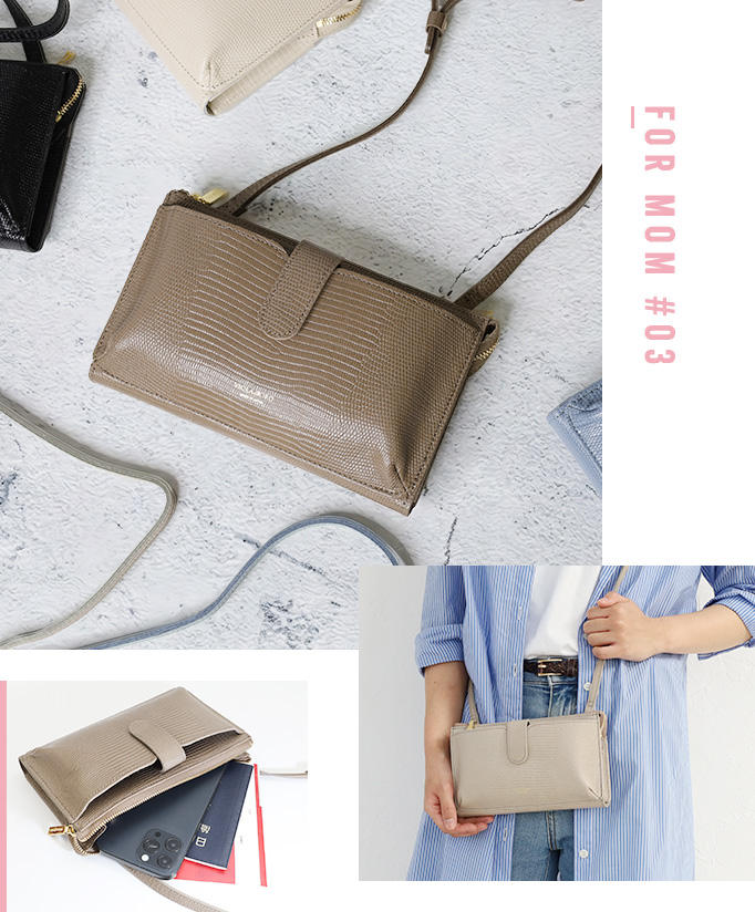 リザード型押しレザーが上品なスマートフォンポシェット。