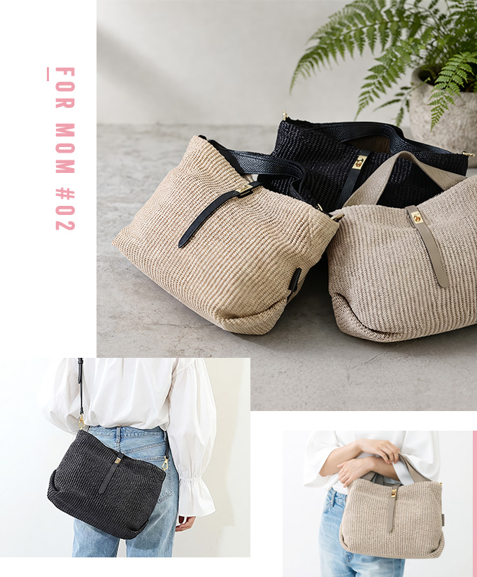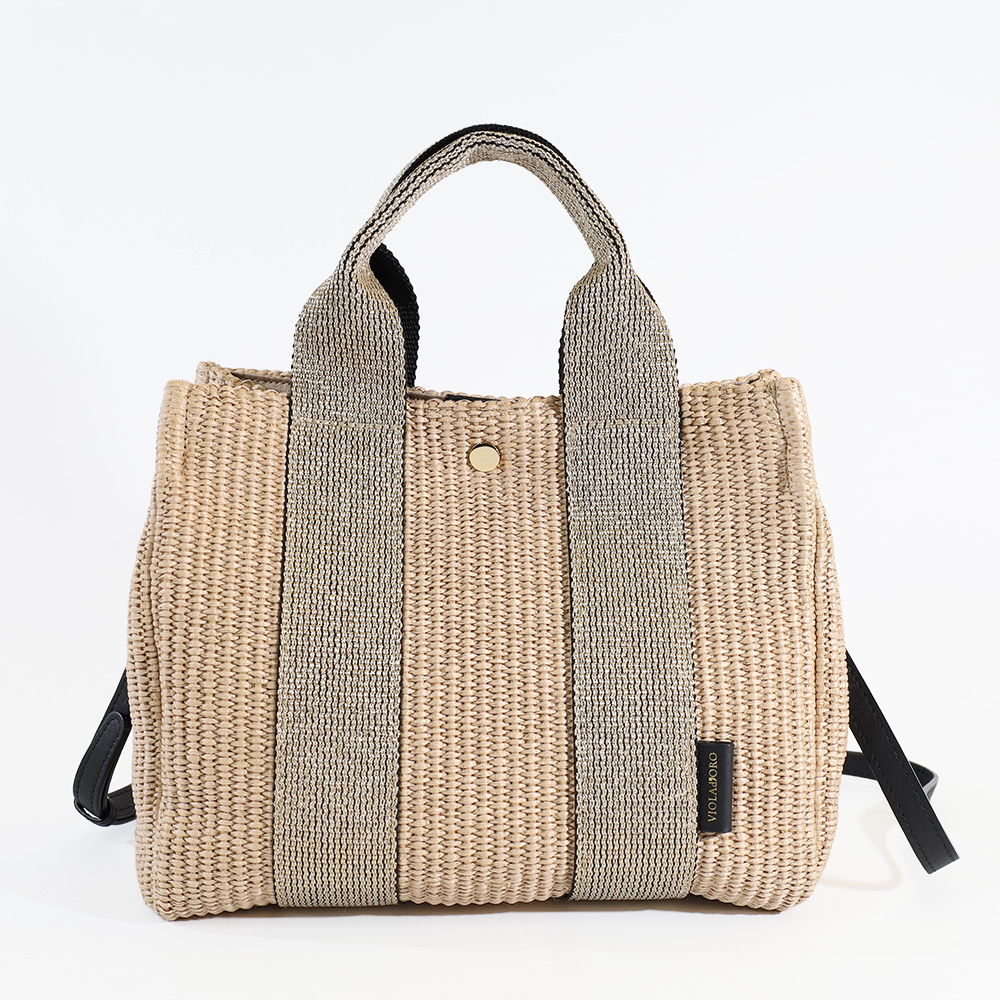 軽やかなラフィア調素材が季節感を添える2WAYトート。
